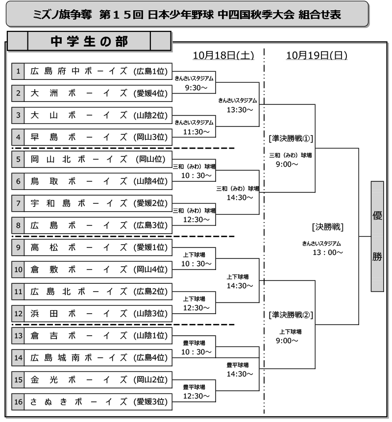 ・ミズノ旗争奪 第15回日本少年野球中四国秋季大会(中学生の部)